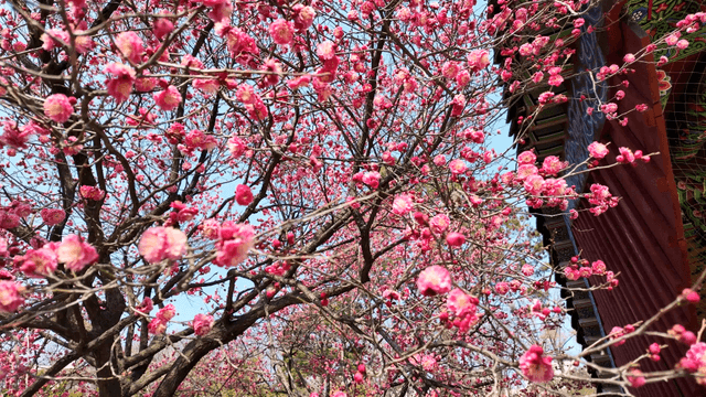 Pink Ume Flower on a Tree Branch Under Blue Sky