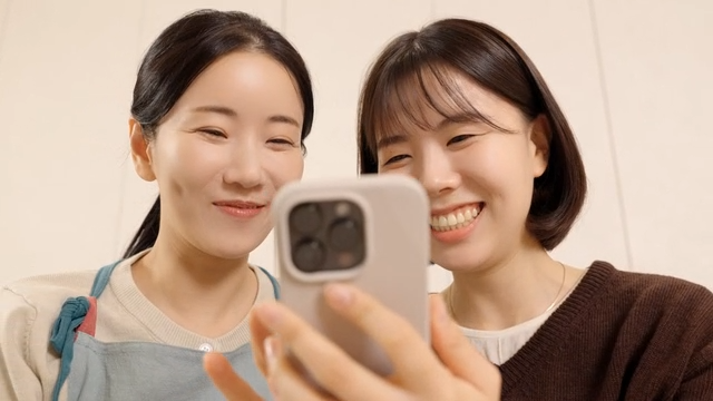 Two women looking at a smartphone together