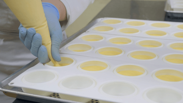 Filling molds with yellow batter