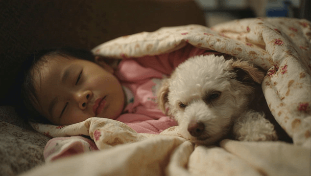 Child and a dog sleeping peacefully