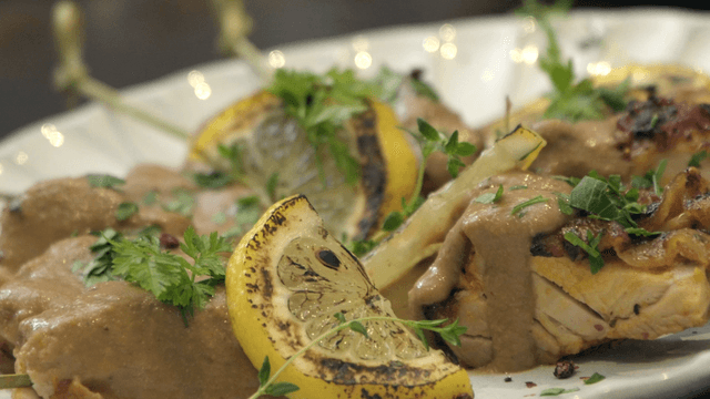Lemon and chicken dish on a plate