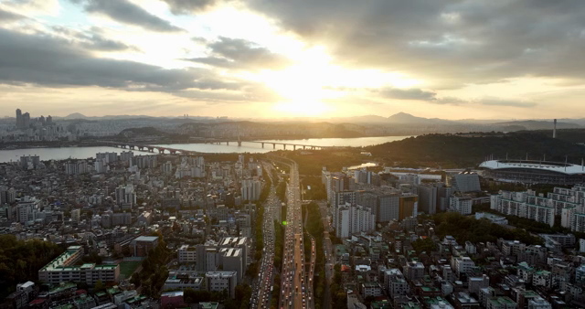 Sunset in an Industrial Complex with Dense Buildings and Factories