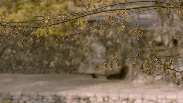 Autumn leaves gently swaying on a branch