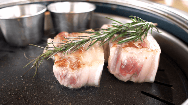 Grilling pork belly with rosemary