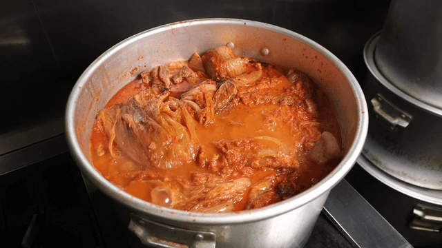 Kimchi stew boiling in large pot