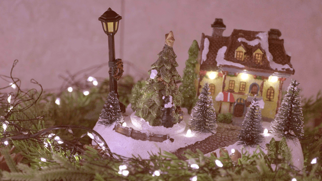 Decorative Christmas Tree and Houses with Lights