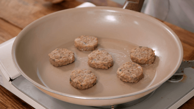 Gloden-brown meat pancake cooked in an oiled frying pan
