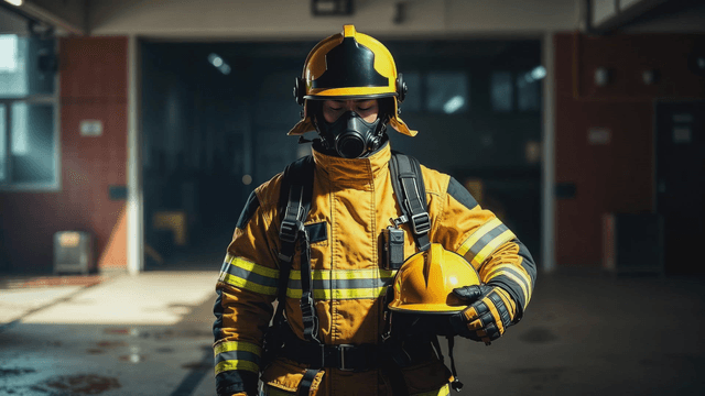 Firefighter Wearing Protective Gloves