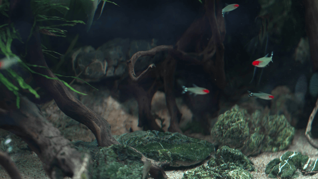 Colorful fish swimming in a planted aquarium