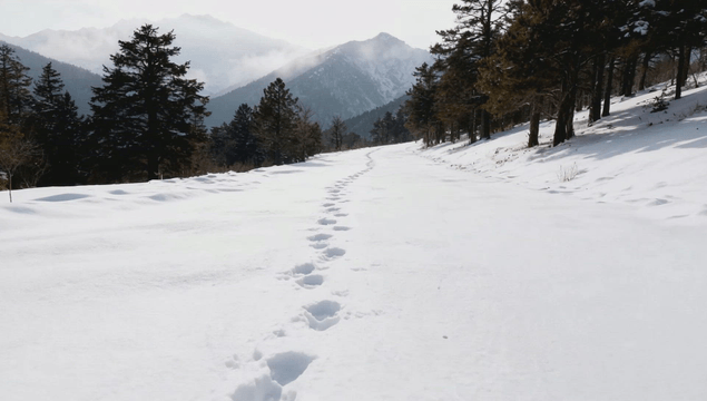 Snow-covered forest and mountain scenery