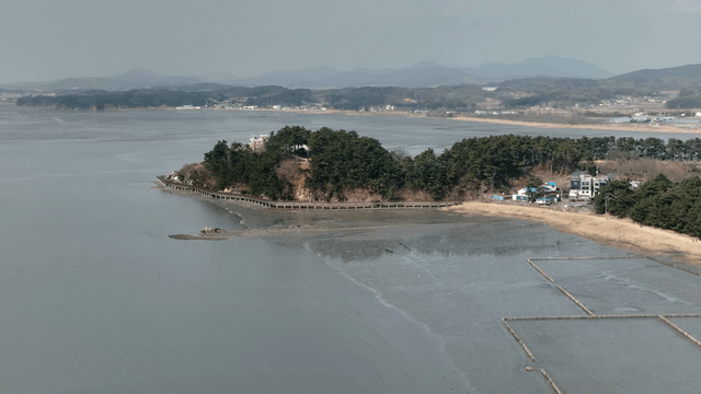 Scenic View of a Coastal Pavilion Surrounded by Trees