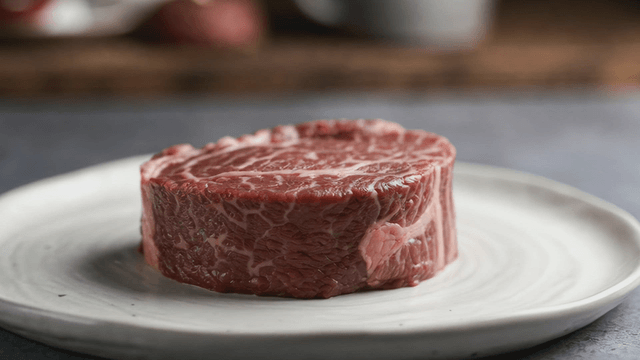 Marbled beef on a white plate