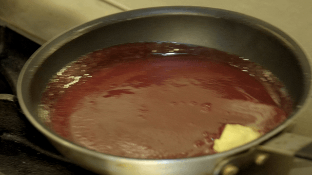Butter melting in a pot of dark broth