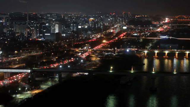 Aerial Shot of the Night View Around Yeouido