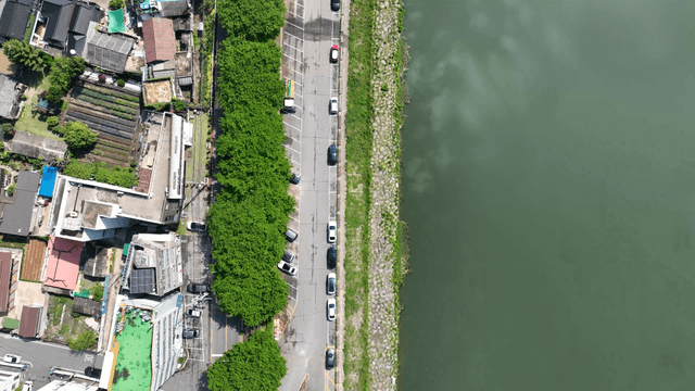Outdoor parking lot by the riverside in the city