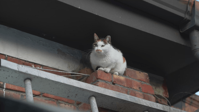 Cat sitting on brick