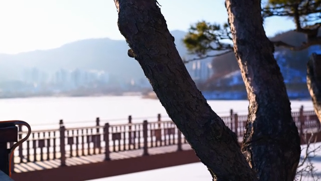 Scenery of the Riverside City Beyond the Train Crossing the Bridge