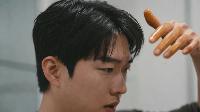 Man applying hair product to wet hair