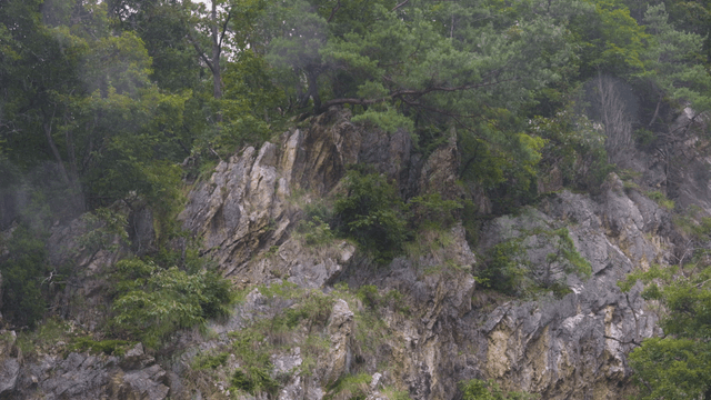 Rocky cliffs with green vegetation