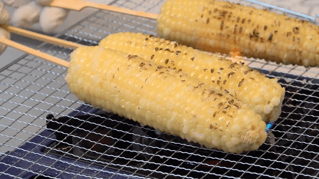 Grilled corn roasted with a torch