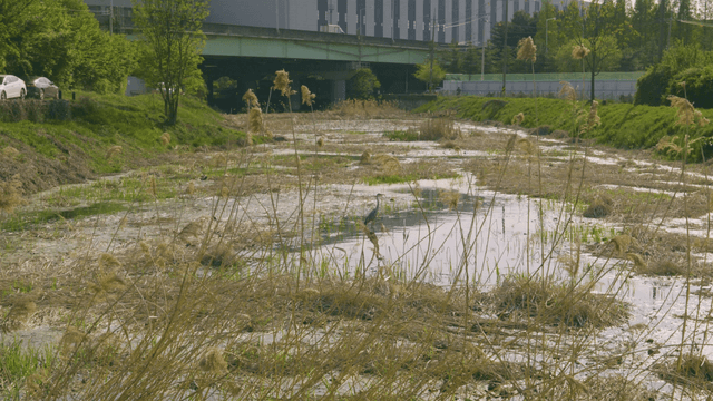 A heron searching for food in a wetland