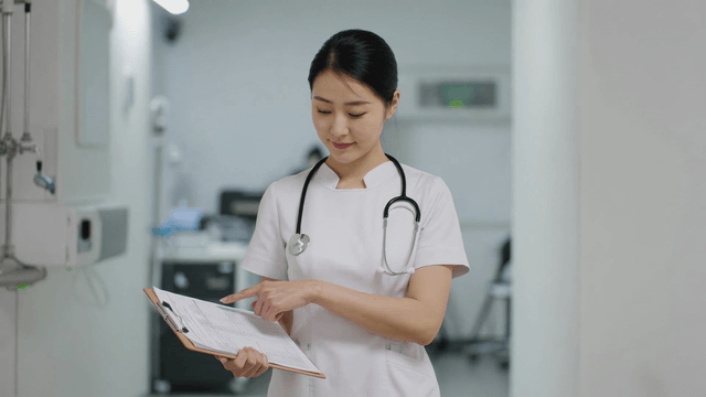 A nurse writing notes in a hospital