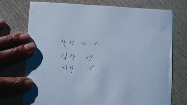 Person writing on paper with focus