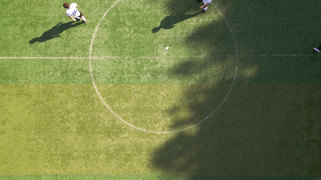 Aerial view of a soccer field in the city