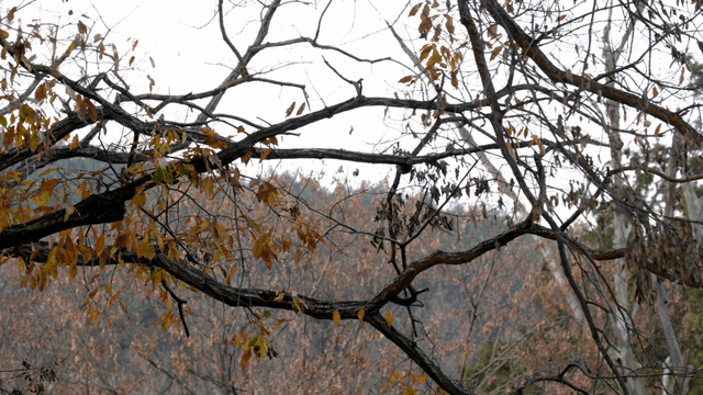 Bare branches with a few autumn leaves