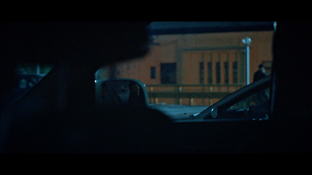 Feet of a Suspicious Person Walking through a Dark Parking Lot at Night