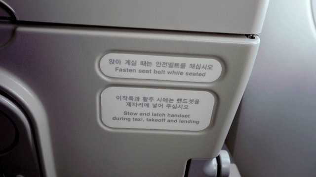 Interior of a airplane with safety signs