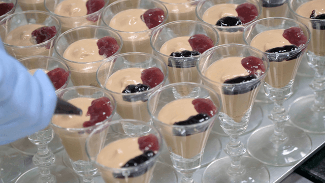 Desserts being prepared in glass cups