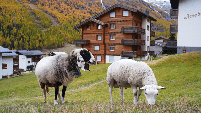 Saas-Fee Filled with Green Mountains and Pure White Eternal Snow