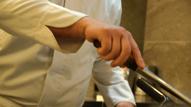Chef preparing ingredients in a kitchen