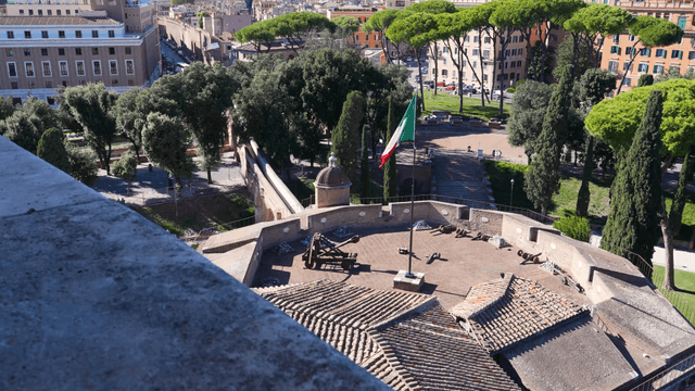 Historic fortress with Italian flag waving
