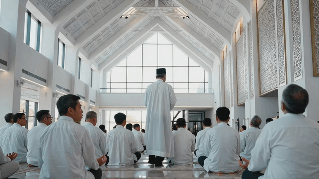 Men praying in a mosque with focus