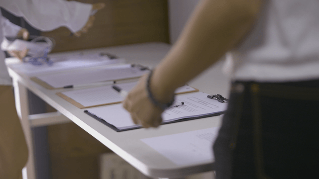 Person working at a desk with documents