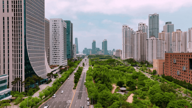 Urbanscape with Skyscrapers and Park with Green Spaces