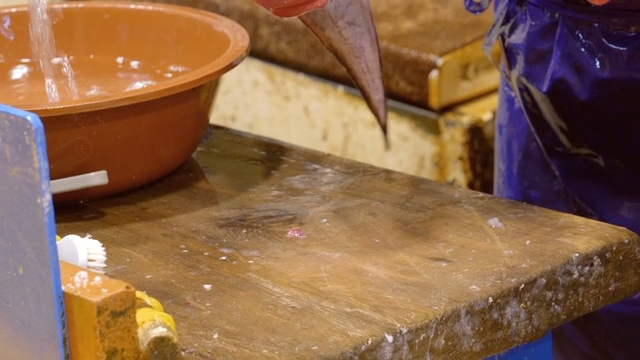 Fish being cleaned and prepared