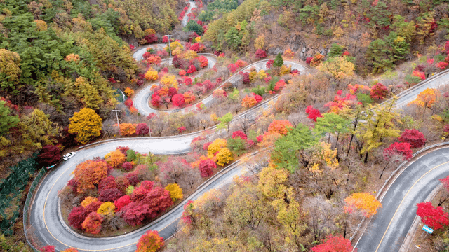 Sunlight shining on the autumn mountain covered in colorful autumn leaves