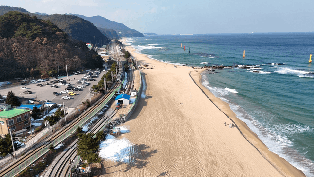 Scenic beach with adjacent railway