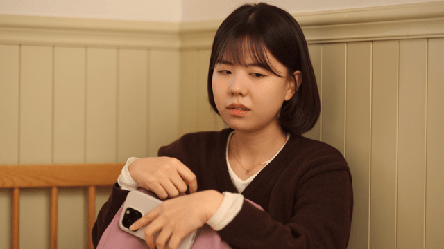 Mother looking at her daughter using her smartphone with pitiful expression.
