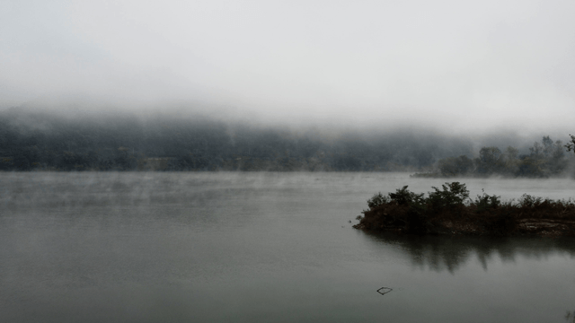 Small island in a misty river