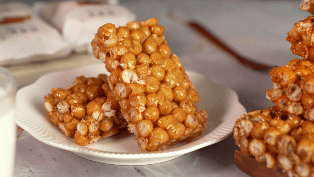 Gangjeong made with beeswax rice cakes served on a white plate