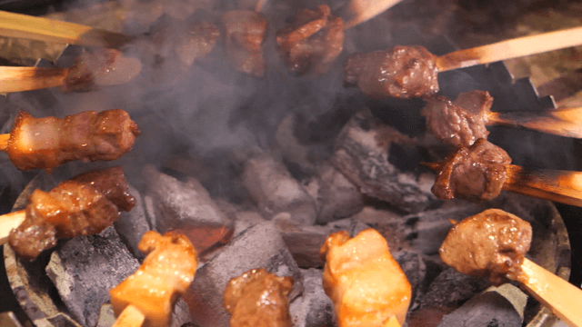 Grilling over charcoal primitive skewers
