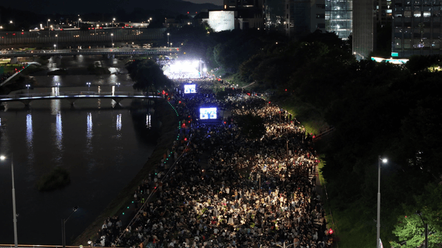 Night festivals and crowds along city's riverside
