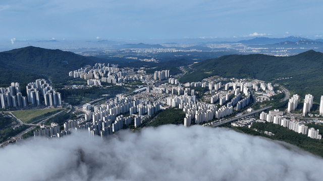 Dense Cityscape with Surrounding Mountains on a Cloudy Day