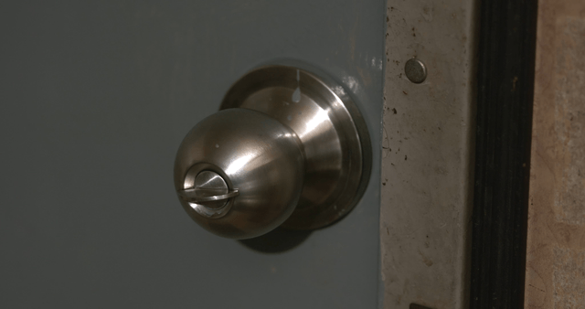 Close-up of door handle and restricted area sign