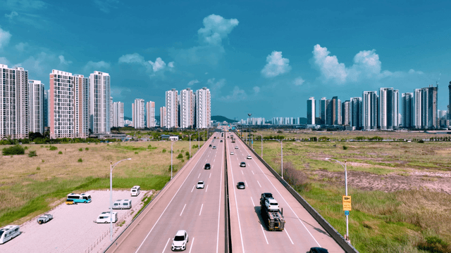 Snow-covered traditional Hanok buildings and modern high-rise buildings