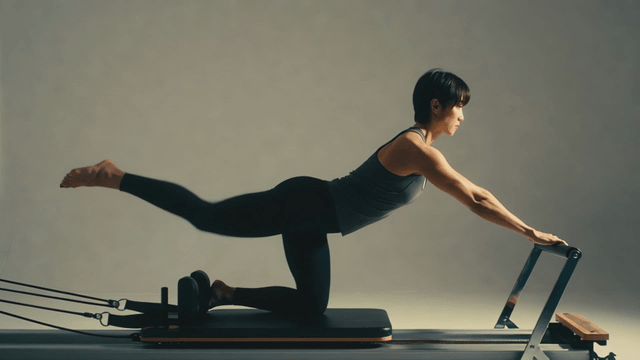 Woman practicing pilates on a reformer
